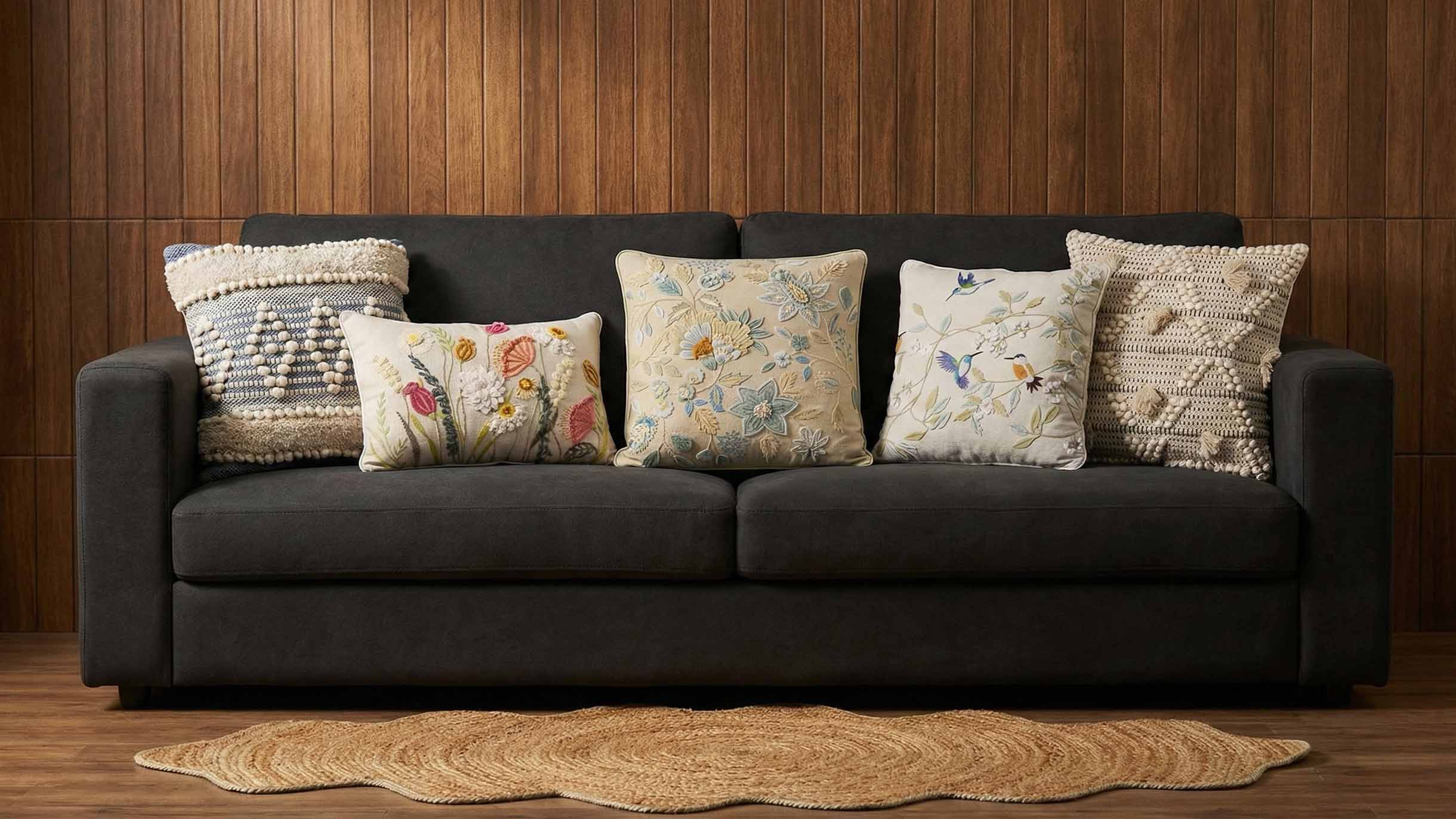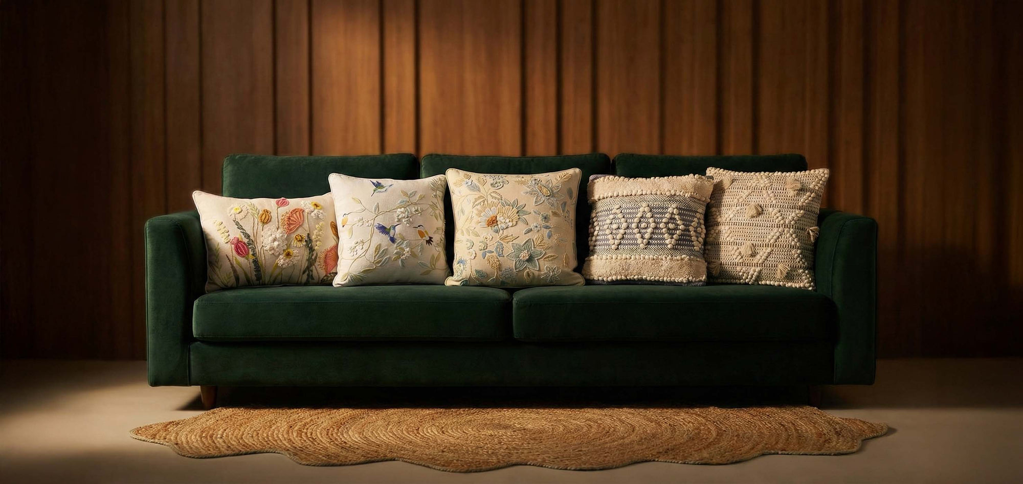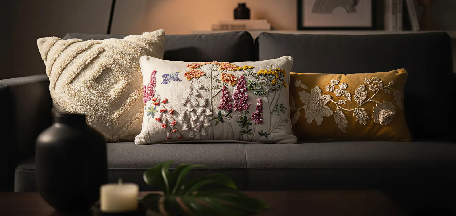 In a world of fast dรฉcor, we honour lasting qualityโcreating pieces that soften, settle, and grow more exquisite with time. Each design is imagined with intention, crafted to feel uniquely yours, and refined to bring a quiet, signature presence into your home. Our proprietary artistry, original patterns, and hand-crafted detailing set every piece apart. With high-performance sustainable textiles, durable natural fiber blends, and care methods that preserve shape and structure, our pieces are made to age beautifully. And with every purchase, you support skilled artisans whose heritage and craftsmanship deserve to thrive.